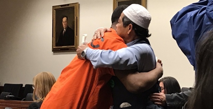 ABD'de görülen bir duruşmada, Müslüman bir baba, İslam'ın ruhuna uygun olanı yaptığını söyleyerek oğlunun katiline sarıldı ve onu affettiğini ilan etti.