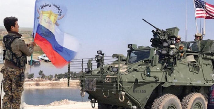 Kendini Esed ordusu komutanı olarak tanıtan PYD/PKK militanı, Münbiç'te rejim bayrağı dikti