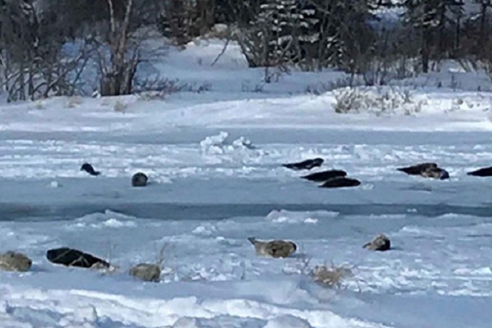 Kanada’da bir düzine fok, okyanusa çıkış yolundaki suların donması üzerine Newfoundland Adası'nda mahsur kaldı.