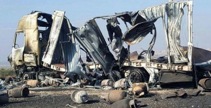 Afrin'e düzenlenen 'Zeytin Dalı Harekatı'na karşı bölgeye terörist ve silah taşıyan 30-40 araçlık terör örgütü YPG'ye ait konvoy, TSK tarafından vuruldu. Görüntüler Genelkurmay Baş