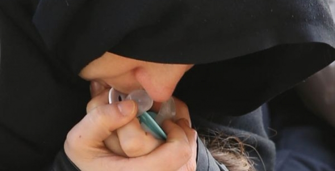İstanbul Maltepe'de, babaları tarafından öldürülen 3 yaşındaki Elif Mina ile 2 yaşındaki Miray Hira toprağa verilirken, acılı anne cenaze namazından önce çocuklarının boynuna astığ
