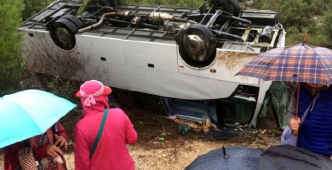 Antalya'nın Kumluca İlçesi'ne bağlı Adrasan Mahallesi yakınlarında kontrolden çıkan tur otobüsü şarampole yuvarlandı. ilk belirlemelere göre kazada 2 kişi hayatını kaybetti, 29 kişi