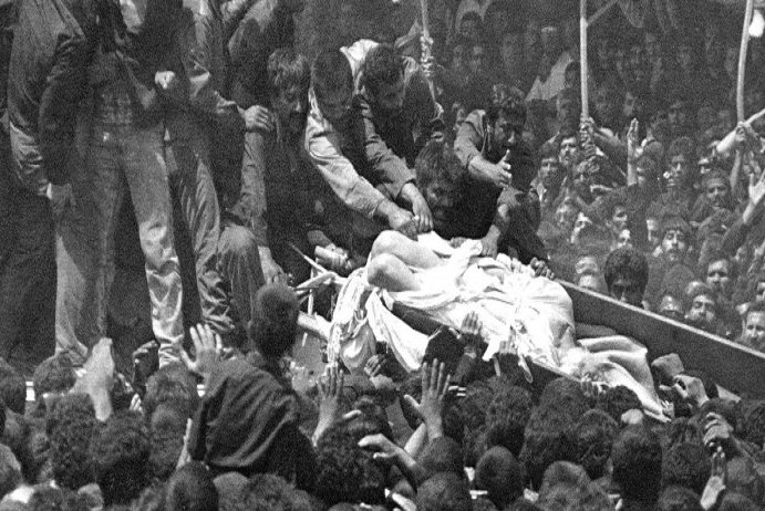 İran İslam Devrimi'nin lideri Ayetullah Humey'nin cenazesi de bir hayli sancılı olmuştur. Meydanlara toplanan hüzünlü kalabalığın içinde cenaze çok zor şartlarda taşındı ve onlarca ki