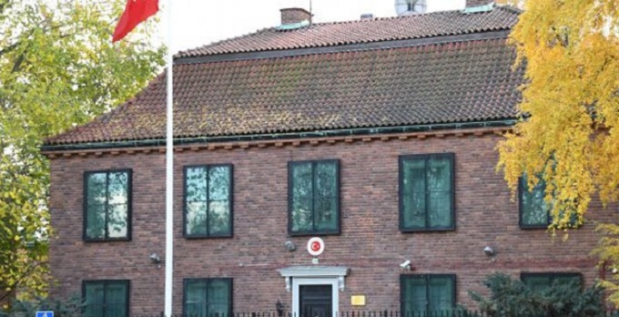 İsveç'teki Türk Büyükelçiliğine sabaha karşı iki kişi elçilik binasının dış duvarlarına ve avlusuna, içinde beyaz boya bulunan çok sayıda şişe attı