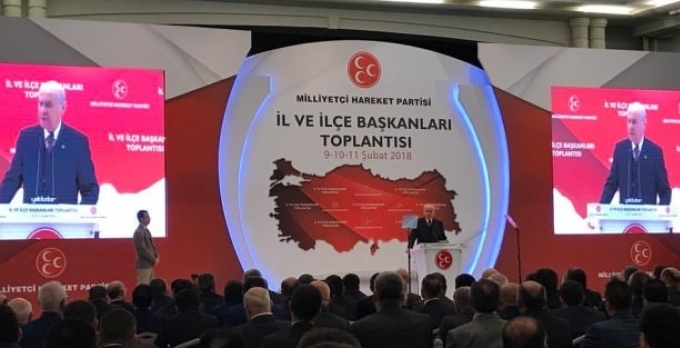 MHP Genel Başkanı Devlet Bahçeli, Antalya'da düzenlenen il ve ilçe başkanları toplantısında konuşuyor.