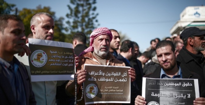 Gazze Şeridi'nde maaş alamayan memurlar, gösteri düzenleyerek Filistin Uzlaşı Hükümetine sesini duyurmaya çalıştı.