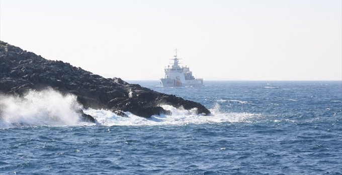 Bodrum açıklarındaki Kardak Kayalıkları'nda Türk ve Yunan sahil güvenlik botları ve savaş gemileri arasında hareketli saatler yaşandı.