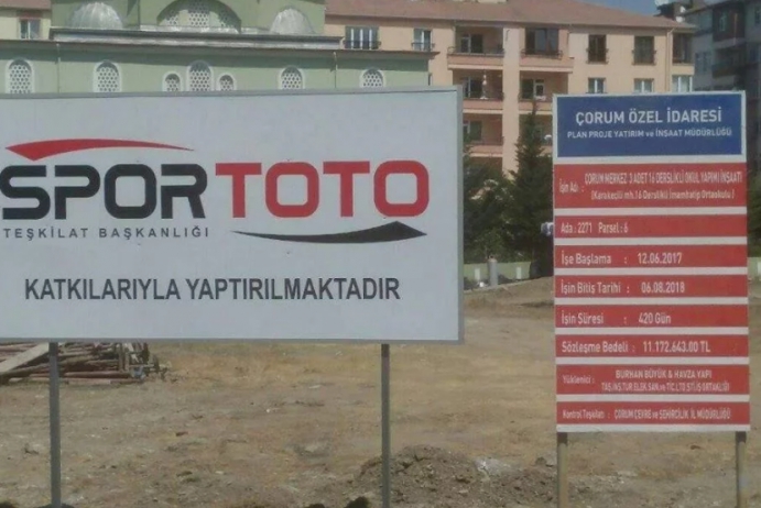 Çorum’da yeni bir imam hatip okulu inşaatı başladı. Ancak yapılacak olan İmam Hatip Ortaokulu’na Spor Toto sponsor oldu. Devlet eliyle kumar oynatan Spor Toto’nun, içinde Kur’an-ı Ker