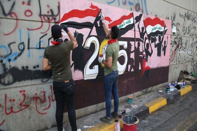 Irak'ın başkenti Bağdat'ta göstericiler, tepkilerini Tahrir Meydanı'ndaki tünelin duvarlarına çizdikleri resim ve karikatürlerle dile getiriyor.