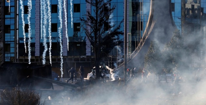 Ramallah'ta İsrail askerleri Filistinli göstericilere yeniden saldırdı. İsrail askerleri Filistinli göstericilere gaz bombaları fırlatıyor.