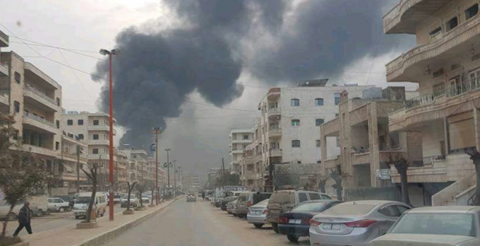 Afrin'de başlatılan Zeytin Dalı Harekatı kapsamında PKK/PYD'nin şehir merkezinde bulunan karargah ve yönetim merkezleri Türk savaş uçakları tarafından ateş altına alındı.