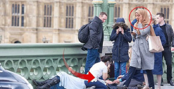 İngiltere terör saldırısının yaralarını sarmaya çalışırken saldırı sırasında çekilen bir fotoğrafa sosyal medyada islamofobik tepkiler yağdı. Kareyi yakalayan fotoğrafçı ise fot