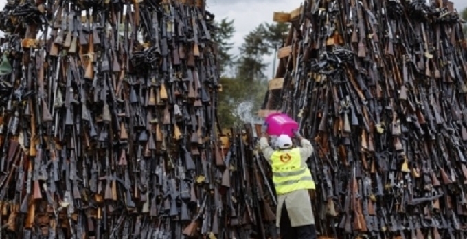 Operasyonlarda ele geçirilen veya gönüllü olarak teslim edilen 5 bin 250'den fazla kaçak silah, ülkenin başkenti Nairobi'nin yakınlarında yer alan tepelerde ateşe verildi.