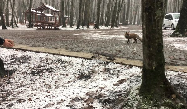 Maslak Fatih Ormanı'nda gezintiye çıkan vatandaşlar manzara karşısında şaşkına döndü. Aç kalan tilki yemek bulmak için vatandaşın arasına indi. Vatandaşlar ilk önce şaşkınlık yaşadı .Ardından tilkiyi beslemeye çalıştı. Tilki bir süre sonra gözlerden kayboldu. Vatandaşlar ise "Çok şaşkınız. Tilki açlıktan buraya kadar gelmiş" dedi.