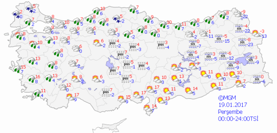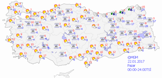 Meteoroloji Genel Müdürlüğünden alınan tahminlere göre, hava sıcaklığının ülke genelinde 2 ila 4 derece artacağı ve mevsim normalleri civarında seyredeceği tahmin ediliyor.