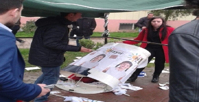 Sakarya'nın Hendek İlçesi'nde, CHP İlçe Gençlik Kolları üyelerinin referandumla ilgili kurduğu 'Hayır' standı 15- 20 kişilik grubun saldırısına uğradı. CHP'nin standı parçalanırken, 3 genç tartaklandı. 3 kişi gözaltına alınırken, olayla ilgili soruşturma başlatıldı.
