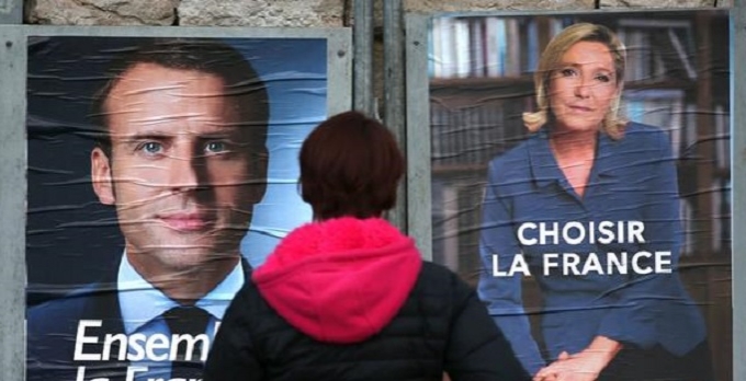 Kamu yayıncısı France 2 televizyonunun hazırlattığı anketlere göre, kendisini siyasi merkezde konumlandıran Yürüyüş Hareketi lideri 39 yaşındaki Macron oyların yüzde 65,1'ini alırken rakibi aşırı sağcı Marine Le Pen yüzde 34,9'da kaldı.