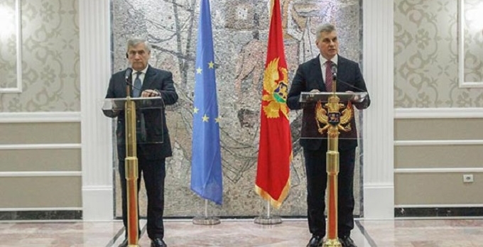 AB'ye katılım müzakerelerine devam eden Karadağ'da temaslarda bulunan Tajani, Meclis Başkanı İvan Brajovic ile görüştü.