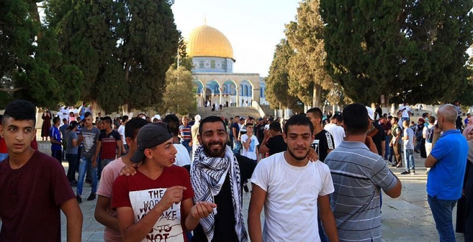İsrail'in Mescid-i Aksa'ya uyguladığı yasakları kaldırmasının ardından Mescid-i Aksa'ya akın eden Filistinliler, dünyanın dört bir yanından imkanı olan tüm Müslümanları yanlarına çağırıyor.