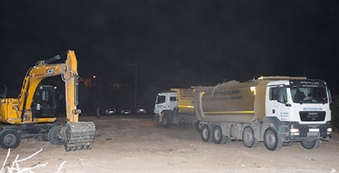 Çalışmalar kapsamında hafriyat kamyonları ile iş makineleri, akşam saatlerinde ODTÜ arazisine girip çıkmaya başladı.