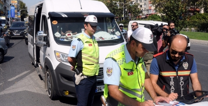 Trafik Denetleme Şube Müdürlüğü’ne bağlı ekipler, okulların açılmasının ardından öğrenci servislerini denetledi. Evrakları eksik sürücülere para ceza kesildi. Polisler, kendisinin tamirci olduğunu söyleyen ve ehliyetsiz öğrenci servisi kullanan 50 yaşındaki Muzaffer Zamur’a para ceza kesti, aracını ise bağladı.