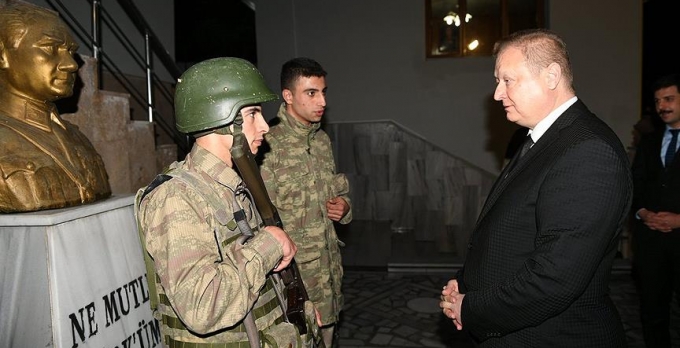 Karakol Komutanı Kıdemli Başçavuş Şerafettin Demircioğlu'ndan bilgi alan Yavuz, askerlerle sohbet etti.