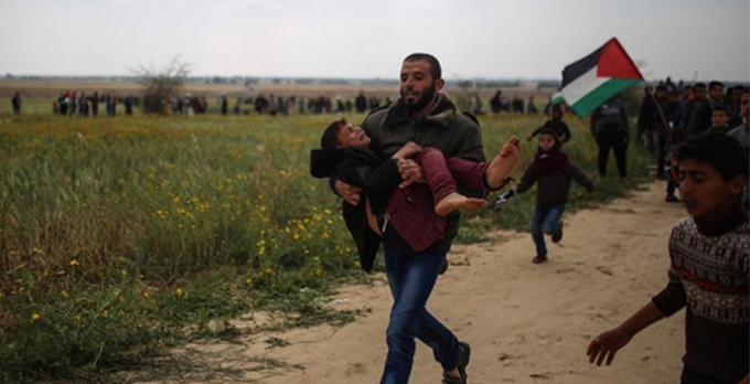 İsrail ablukası altındaki Gazze Şeridi'nin İsrail sınırında cuma günü düzenlenen "Filistin Toprak Günü" gösterilerine İsrail askerlerinin gerçek mermi ile müdahalesi sonucu şehit olan 17 Filistinlinin yanı sıra yüzlerce Filistinli yaralanmıştı.