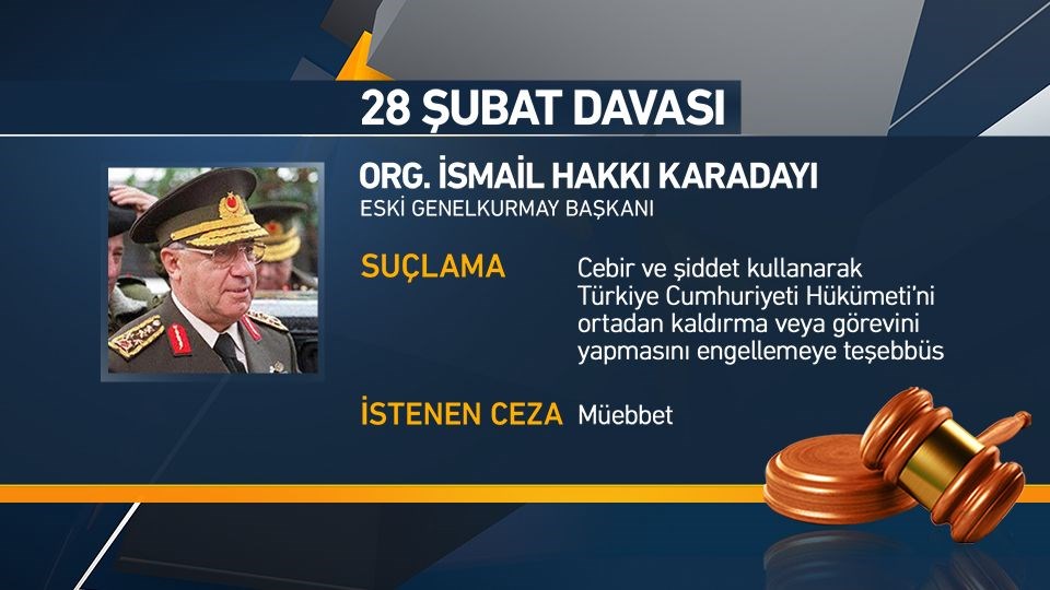 Dönemin Genelkurmay Başkanı İsmail Hakkı Karadayı, Genelkurmay İkinci Başkanı Çevik Bir ve YÖK Başkanı Kemal Gürüz sanıklar arasında yer aldı.