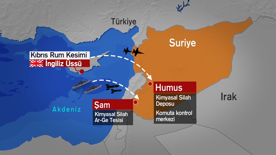 ABD, Fransa ve İngiltere, Suriye rejimini vurdu. Saldırıda başkent Şam'daki ve Humus'taki askeri noktalar ve kimyasal depolar hedef alındı. ABD Başkanı Trump, "Saldırı emrini verdim" sözleriyle harekatı duyurdu. Pentagon, Duma'da kimyasal silah kullanıldığına dair kanıtların olduğunu ve operasyonun tamamlandığını açıkladı. Rusya'nın Washington Büyükelçisi, "Daha önce böyle saldırılarının sonuçları olacaktır diye uyardık" dedi. İran ise harekata "Operasyonu şiddetle kınıyoruz. Bölgesel sonuçları olacak" tepkisini verdi. NATO ise harekata destek bildirisi yayınladı. Saldırıda 100'den fazla Tomahawk kullanıldı. Suriye devlet televizyonu hava savunma sistemlerinin 30 füzeden 10'unu havada imha ettiği bilgisini geçti. Rusya da "Roketlerin çoğu havada imha edildi" dedi. Trump yönetimi geçen yıl da Suriye'yi vurmuştu.