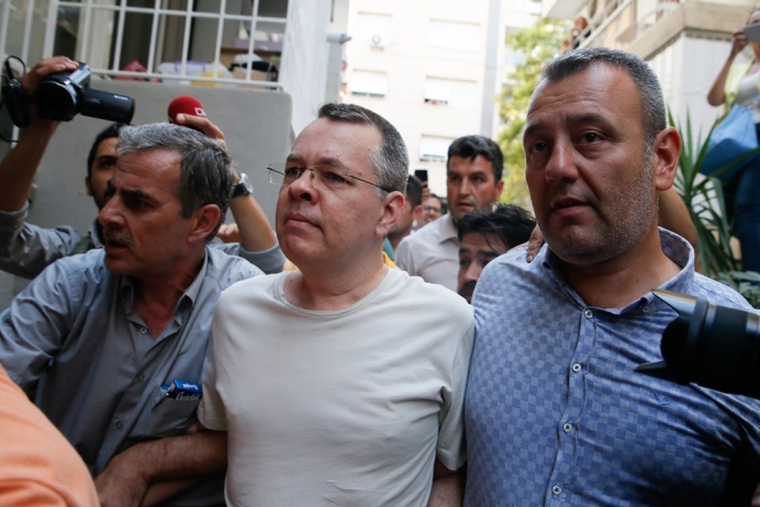 İki yıl önceki darbe giriÅŸiminin ardından hükümetin darbe giriÅŸiminden sorumlu tuttuÄŸu "FETÖ" ve PKK ile baÄŸlantıları bulunduÄŸu suçlamalarıyla tutuklanan ve Nisan ayında yargılanmaya baÅŸlayan Brunson, Temmuz ayında ev hapsine alınmış ve hakkında yurt dışına çıkış yasağı konulmuÅŸtu.