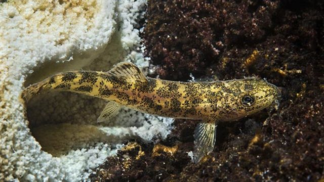 İl Jandarma Komutanlığı Su Altı Timi, Van Gölü'ndeki dalış eÄŸitimi sırasında 13 metre yükseklikteki bir mikrobiyalitin içerisinde yaÅŸayan siyah benekli sarı bir balık türüne rastladı.
