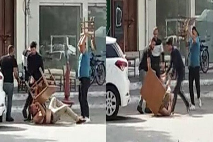 Muğla'nın Fethiye ilçesinde ganyan bayisi işleten Barış N. (51), tartışma sırasında tabancayla yaraladığı kişinin 4 yakını tarafından masa ve sandalyelerle dövüldü. Olay, cep telefonu kamerasına yansıdı.
