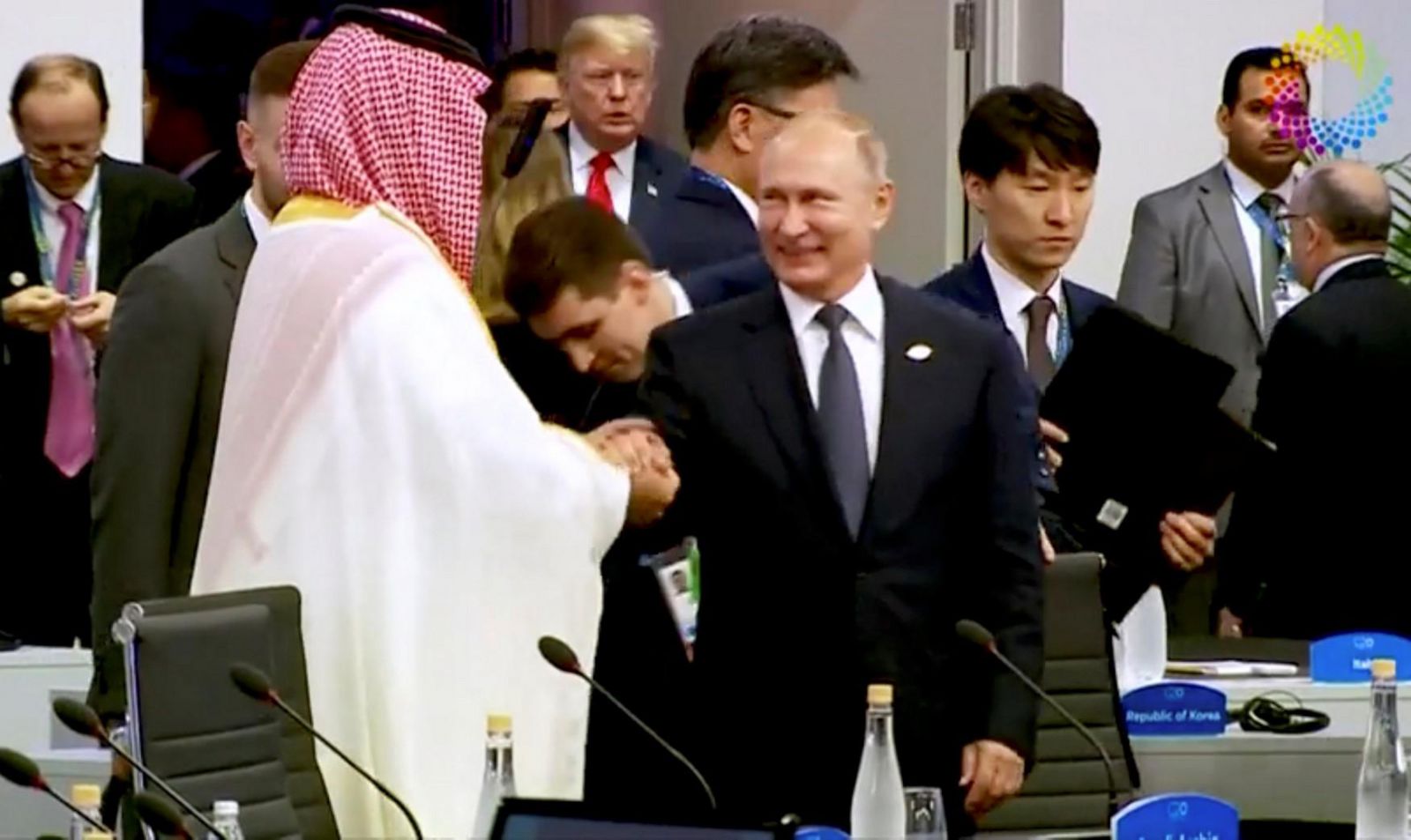 Liderler zirvenin açılış oturumu için Costa Salguero fuar bir araya geldi. Prens Selman, Kaşıkçı cinayetinden bu yana ilk kez liderlerin katıldığı uluslararası bir toplantıda boy gösterdi.