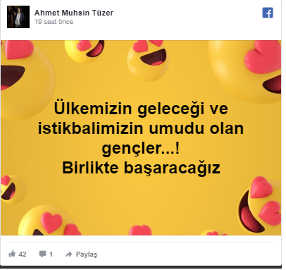 Tüzer, geçtiÄŸimiz yıl Diyanet İşleri BaÅŸkanlığı'ndaki görevinden ihraç edilmiÅŸti. Bugün sosyal medya hesabı Facebook üzerinden paylaşımlarda bulunan Tüzer, "Ülkemizin geleceÄŸi ve istikbalimizin umudu olan gençler…! Birlikte baÅŸaracağız" dedi.
