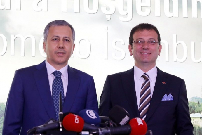 İmamoÄŸlu da ziyaretinden dolayı Yerlikaya'ya teÅŸekkür etti. İmamoÄŸlu, "Daha önce göreve baÅŸladığımızda devletimizin geleneÄŸi gereÄŸi Sayın Valimize süreçle ilgili duygularımızı ifade etmek için ziyaret etmiÅŸtim. Kendileri iade-i ziyarette bulundular. Çok teÅŸekkürler. İstanbulluların beklediklerini gayet güzel ifade ettiler. Biz de aynı yönden bakıyoruz. İşbirliÄŸi içerisinde İstanbul'a hizmet üretmenin esas olduÄŸu bir dönem olsun. Bu dilekle yola çıktık. Elimizden geleni yapacağımızı Valimize ilettim. Kendileri aynı dilek ve temennide bulundular. Bu yönüyle İstanbul'un her sorununa deÄŸinen, her konusuna hızlı bir ÅŸekilde temas eden, sorunu çözen bir iÅŸbirliÄŸi, muazzam bir uyum, senkronize bir çalışma dönemini birlikte yaÅŸatırız. İstanbulluları mutlu ederiz. Dolayısıyla vazifemizi, sorumluluÄŸumuzu yerine getirmiÅŸ oluruz. İstanbul'un zamanı hızlı akıyor. Sorunları çok. Çözüm isteyen vatandaÅŸlarımızın sayısı çok. O bakımdan bir an önce iÅŸimizi konuÅŸacağımız, sorunları ortak konuÅŸacağımız, zeminler ve ortamların baÅŸlamasını diliyoruz." dedi.