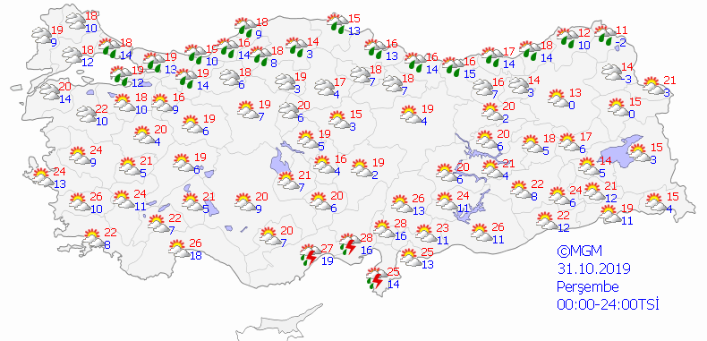 Buna göre 31 Ekim PerÅŸembe günü İstanbul'u saÄŸanak yağış bekliyor. DiÄŸer günler ise bulutlu ve parçalı bulutlu geçecek.