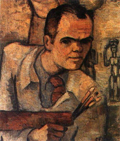 Portrelerinde, otoportrelerinde modelin kişiliğinin özünü ayrıntılardan kurtararak, yalın bir biçimde yansıtmıştır. Otoportresinde yüzünü, bedeninin ekseninden saptırarak yana döndüren sanatçı gözlerini izleyiciye çevirmiştir. Koyu renk değerlerini fonda ve saçlarında, birbirine yakın tonlarıyla açık renkleri de yüzünde, fularında ve giysisinde kullanarak bedeni tuvalin ön planına taşımıştır. Böylece renk tekniğiyle sağladığı derinlik izleyiciye yaklaştıkça hacmi büyütmüştür. Zeminden türemişçesine geri planda bıraktığı yüzü tedirgin edici bir etkiye sahiptir.
