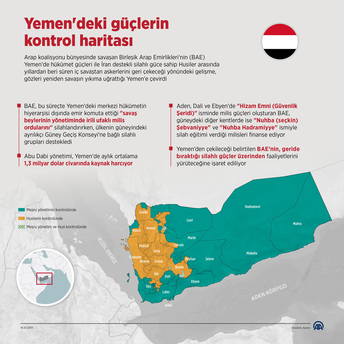 Uzun süredir siyasi istikrarsızlığın hüküm sürdüÄŸü Yemen'de İran destekli Husiler, Eylül 2014'ten bu yana baÅŸkent Sana ve bazı bölgelerin denetimini elinde bulunduruyor. Suudi Arabistan öncülüÄŸündeki koalisyon güçleri ise Mart 2015'ten bu yana Husilere karşı operasyonlar düzenleyerek Yemen hükümetine destek veriyor.