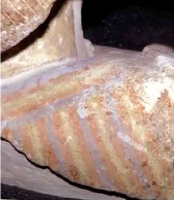 Hazreti Yusuf’un kabri olduÄŸu düÅŸünülen mekânda bulunan kırılmış heykelin renkli pelerini temsil ettiÄŸi söylenen sırt kısmı.