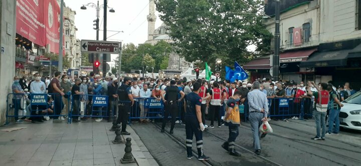 Ayasofya Camii'nde bugün kılınacak namaz öncesi vatandaşlar geceyi caminin çevresinde geçirdi. Gün ağardığında bölgede yoğunluğun arttığı görüldü.