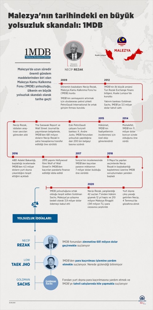 Malezya'da uzun süredir önemli gündem maddelerinden biri olan Malezya Kamu Kalkınma Fonu (1MDB) yolsuzluğu, "ülkenin en büyük yolsuzluk skandalı" olarak tarihe geçti.