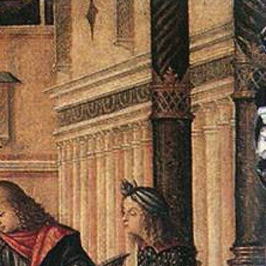 1-Süleyman mabedi muadili DiÄŸer tablolarında Kudüs’ü temsil eden ÅŸehir tasvirleri yapmış olan Carpaccio, burada da benzer öÄŸeler kullanır. Bunların en ilginci, Kudüs tasvirlerinde Süleyman Mabedi’ni temsil eden kule benzeri binanın burada da yer alması. Yapının bir tür evrensel güç sembolü olarak sahneye bilinçli olarak yerleÅŸtirildiÄŸi fark ediliyor.