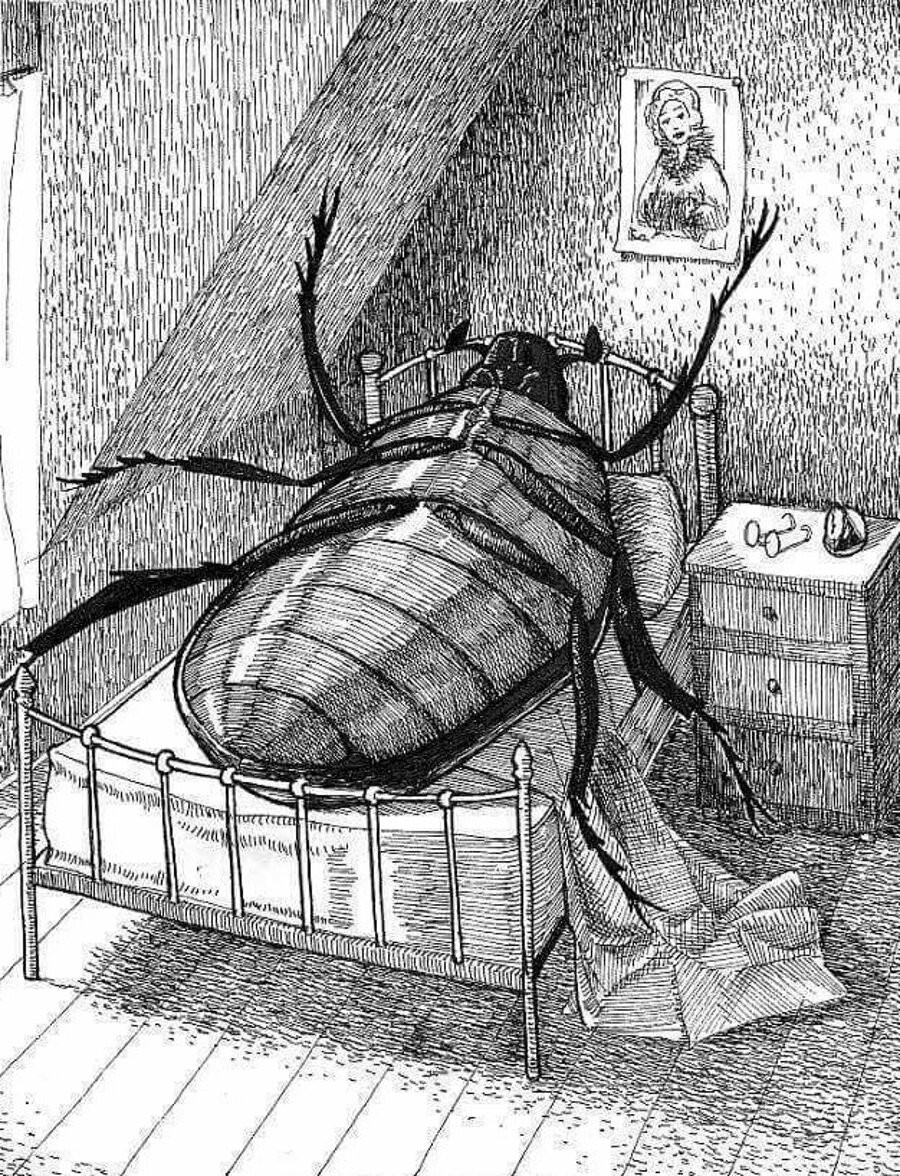 Gregor Samsa kendi odasında eski bir köle, böcek suretinde özgürleÅŸerek belki o duvarın hemen üstünde, ilk trene aktarma yapmak ve sabahın bir küfür gibi yüzüne çarpılmasına katlanmak zorunda deÄŸil. Kovulmadan geçen günlere ÅŸükretmeye mecbur deÄŸil. Belki ilk defa zorunda deÄŸil, mecbur deÄŸil, böcek yalnızca, eskiden olduÄŸu gibi aslında, bu kez kendi kapanına kısılmış sadece.