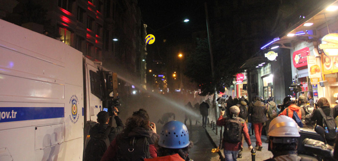 İstiklal Caddesi'nde toplanarak, Cumhuriyet Anıtı'na yürümek isteyen protestocu grubu, Çevik Kuvvet ekipleri Taksim Meydanı giriÅŸinde durdurdu. Polisin dağılmaları yönünde yaptığı anonslara raÄŸmen ilerlemeye devam eden gruba, biber gazı ve tazyikli suyla müdahale edildi. Bunun üzerine gruptakiler, ara sokaklara dağıldı.