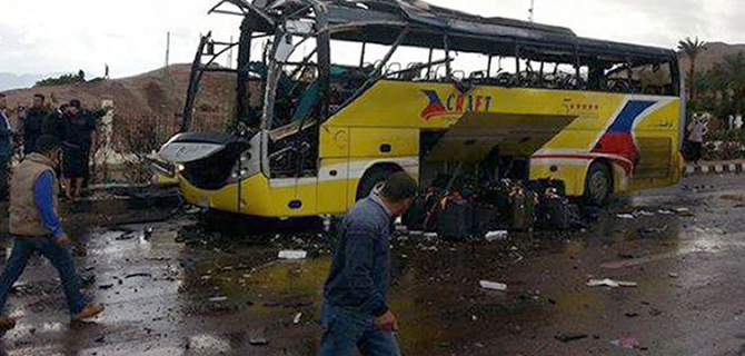 Sina yarımadasında, İsrail sınırına doğru yol alan otobüsteki patlamada dört kişi öldü, 14 kişi yaralandı.