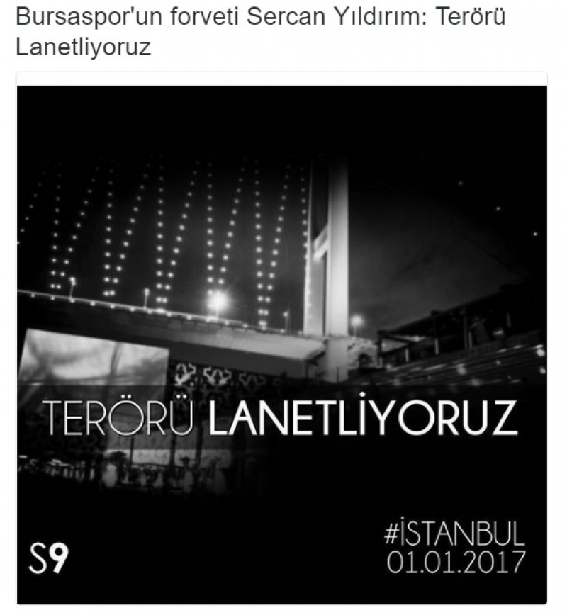 < > Önceki Sonraki> Spor dünyasının duyarlı temsilcileri Reina saldırısını kınadı Sercan Yıldırım Toplam 40 / 33. Foto Federasyonların, spor kulüplerinin ve sporcuların yaptıkları kınama mesajları şu şekilde: Diğer Galeriler Küçük Bir Sorumluluk Hikayesi Hollywood Müslümanları nasıl gösteriyor? Hollywood Müslümanları nasıl gösteriyor? Korkut Ata ne söyledi?