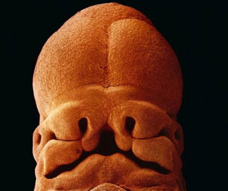 Beşinci haftada fetüsün uzunluğu 9 milimetredir. Yüzü ağız, burun delikleri ve göz açıklıkları ile görmek mümkündür.