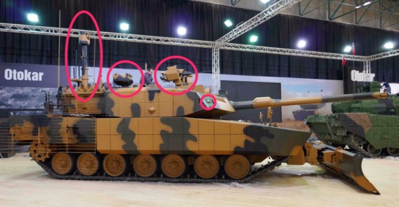 ALTAY: ERA+kompozit zırh, kafes zırh, dozer bıçağı, EO sensor, SARP UKSS & AKKOR APS (8\'li lancer, maket)