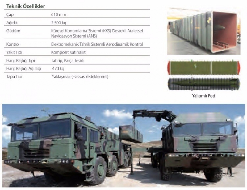 ROKETSAN tarafından geliştirilen ve üretilen 610 milimetre çaplı KAAN füzesi, ordu etki sahası içerisinde yüksek öncelikli hedefler üzerinde yoğun ve etkili ateş gücü sağlıyor. Füze, zamanında, doğru ve etkili ateş yaratarak manevra birliklerine mükemmel ateş desteği imkanı veriyor. KAAN füzesi, ataletsel güdüm sistemi veya küresel konumlama sistemi (KKS) destekli ataletsel güdüm sistemi sayesinde hedefleri hassas olarak vurabilecek. KAAN füzesi, yalıtımlı pod içerisine yerleştirilerek pod içi füze konfigürasyonu olarak depolanıyor, taşınıyor ve fırlatılabiliyor.