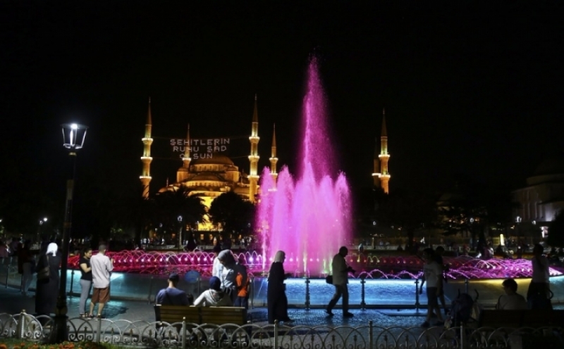 İstanbul'da 15 Temmuz Demokrasi ve Milli Birlik Günü etkinlikleri kapsamında, tarihi camilere mahya asıldı. Sultanahmet Camii'ne ''Şehitlerin ruhu şad olsun'' yazısı asıldı.
